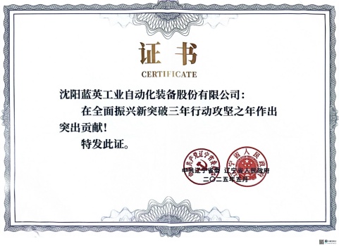 5月13日,遼寧省委省政府對在全面振興新突破三年行動(dòng)攻堅之年作出突出貢獻的241戶(hù)企業(yè)予以通報表?yè)P。其中,全省共有111家民營(yíng)企業(yè)獲得表彰,沈陽(yáng)藍英工業(yè)自動(dòng)化裝備股份有限公司位列其中。