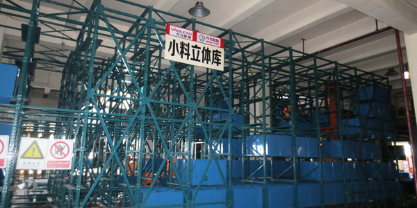 料袋裝盤(pán)后,輸送至立體庫進(jìn)行儲存。根據生產(chǎn)任務(wù),將所需小料的托盤(pán)出庫,通過(guò)升降機、空中輸送線(xiàn)、翻轉機、皮帶輸送機送入密煉機。