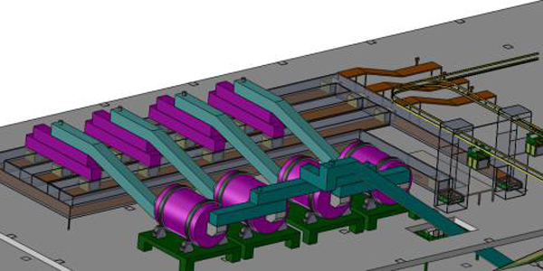 天然膠人工輔助上線(xiàn)、金屬檢測、天然膠粉碎、攪拌混勻、天然膠緩存、自動(dòng)稱(chēng)量、合成膠切膠、合成膠輸送稱(chēng)量、周轉料桶的地面輸送、空中輸送、自動(dòng)投料、空桶返回的全自動(dòng)化過(guò)程。