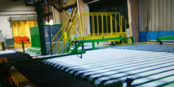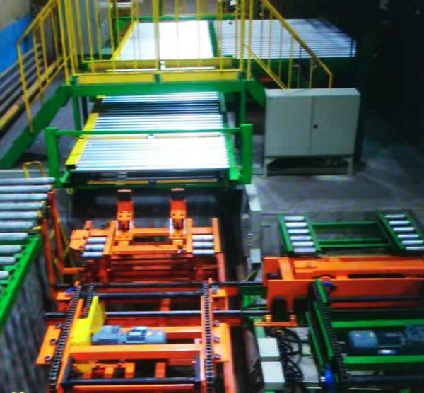 從擠出機排出的合格胎面通過(guò)定中及輸送輥床、單條胎面橫向定位組合傳送帶、多條胎面導出輸送帶、活動(dòng)導入指型輸送輥道、液壓升降平臺,將胎面裝入格柵車(chē)。以備轉入成型機工序。