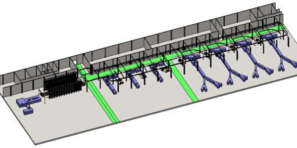 鋼絲簾布卷的儲存至各個(gè)裁斷機臺的自動(dòng)輸送。其中存儲采用自動(dòng)立體庫,全自動(dòng)化立體倉儲不僅按需求自動(dòng)存取,而且可以與倉庫以外的生產(chǎn)環(huán)節進(jìn)行有機連接,系統將每個(gè)環(huán)節引入計算機數字管理,形成計算機信息化、條碼化管理,從而達到全自動(dòng)化控制的目的,使計算機管理系統和自動(dòng)化搬運設備聯(lián)合作業(yè)。